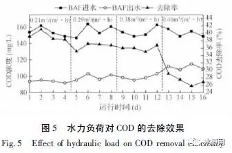 制药园区废水处理方案工业园区是一个承受高密度经济活动和高强度资源消耗的特定区域,它为我国加快工业化进程的同时,其排放的废水也会对周边地区水环境造成严重污染。近年来,利用化学氧化/生物法联用技术处理传统物化/生物工艺难处理或不能处理的特定工业废水的研究逐渐增加。 自2008 年8 月1 日起,我国开始全面实施《制药工业水污染物排放标准》。目前许多发酵类、化学合成类原料药生产企业废水距新标准排放限值的要求还存在着差距,主要通过制药企业的处理设施+ 城市(或园区) 污水处理厂组成的两级污水处理系统,达到《城镇污水处理厂污染物排放标准》(GB18918-2002) 中一级A 或B 标准限值后排放入最终受纳水体的途径实现废水的达标排放。然而,目前一些制药企业和园区的废水排放难以达标,企业的经营发展受到严重的制约。 近年来,臭氧-曝气生物滤池耦合技术受到广泛关注,利用臭氧的强氧化性,可以提高废水的可生化性,去除色度和部分COD,而后续曝气生物滤池又具有占地面积小、出水水质好、不会发生污泥膨胀、处理费用低等特点。目前,此类技术的研究多集中在一些工业废水的深度处理,例如印染废水、石化废水、纺织废水、制革废水、造纸废水、焦化废水、垃圾渗滤液和港口洗舱废水等。但是,利用臭氧/曝气生物滤池联用技术处理以难降解、生物毒性大的发酵类抗生素原料药企业的制药废水为主的工业园区废水的研究鲜有报道。 针对以生产发酵类抗生素原料药为主的某制药园区综合废水送入园区污水处理厂处理时存在常规水质指标达标困难、潜在生态安全性的问题,本研究提出了以H/O 工艺为预处理手段,O3-BAF 联合工艺深度处理制药工业园区废水的工艺路线,在对常规水质指标进行分析的同时,研究了该组合工艺对污染物毒性的去除效果,研究结果可为制药工业园区污水处理厂的工艺设计、运行控制和生态风险控制提供基础数据和技术参考。 1 实验部分 1. 1 实验水质 实验用水为内蒙古某市制药工业园区实际综合废水,由制药废水和园区其他废水组成。制药废水为该园区制药厂发酵类抗生素原料药生产废水经过水解酸化-循环活性污泥法(CASS) -好氧工艺处理的企业外排水,占总水量的80%。园区其他废水为该园区化工、食品、电厂、金属冶炼等企业的外排水,占总水量的20%。制药厂外排水中多为难生物降解的有机代谢中间产物,能否有效去除这部分有机物是制约此类废水达标的关键因素,相关水质指标如表1 所示。 1. 2 实验装置 实验装置的处理能力为28. 8 L/d,24h 连续运行。工艺流程如图1 所示,反应器均为有机玻璃制作。其中H/O 反应器为装有组合填料的折流板式反应器,水解酸化段有效容积为24 L,好氧段有效容积为24 L; 臭氧化系统由臭氧发生器、臭氧化反应柱、臭氧缓冲瓶及尾气吸收装置组成,臭氧制备采用SK-CGF-10P 型氧气源臭氧发生器,反应柱由有机玻璃制成,内径55 mm,高为1 000 mm,有效容积为2 L,臭氧缓冲瓶有效容积3 L,内设残留臭氧空气吹脱装置,尾气由NaOH 和Na2S2O3溶液的吸收瓶后排向室外; BAF 反应柱内径为55 mm,高2 200mm,承托层高为200 mm,填料层高为1 500 mm,内装2~4 mm 粒径的陶粒填料,清水区高为500 mm。 1. 3 接种污泥 H/O 反应器和BAF 反应柱接种污泥均为该工业园区所在城市污水处理厂(百乐克工艺)的活性污泥,按不同反应器的要求进行驯化。 1. 4 实验方法 实验分为3 个阶段。第1 阶段,以H/O 工艺作为生物预处理手段,按常规方式启动H/O 反应器,并对水解酸化段和好氧段的工艺参数进行优化。第2 阶段,当H/O 反应器在最佳工况下稳定运行后,对O3/BAF 深度处理H/O 工艺出水的工艺参数进行研究。最后,分析和评价H/O-O3-BAF 工艺在稳定连续运行期间处理制药工业园区废水的效果。 1. 5 分析项目及方法 按文献中方法测定实验中的有关水质指标,其中,COD: 重铬酸钾法; 色度: 稀释倍数法; pH值: 电极法; 溶解氧: 便携式溶解氧仪法; 臭氧浓度:碘量法。按文献中方法计算臭氧投加量。 水样的发光菌毒性测试在中国科学院生态环境研究中心进行,发光细菌毒性测试方法参照文献。主要实验材料有: DXY-2 型生物毒性测试仪,中国科学院南京土壤所研制; 明亮发光杆菌T3小种(Photobacterium phosphorem T3) 冻干粉,南京土壤所提供;hgCl2、NaCl 均为分析纯。每个样品测定3 次。结果以HgCl2当量表示。 2 实验结果与分析 2. 1h/O 工艺处理制药工业园区废水 水解酸化工艺对环境的要求并不苛刻,由于其后续处理为好氧工艺,因而对pH 的要求并不严格,且由于水解酸化菌对pH 的适应性较强(适宜值为3. 5~10,最优值为5. 5~6. 5) ; 水解酸化工艺对温度亦无特殊要求,在常温下仍可获得满意效果。本实验重点考察了水力停留时间(HRT) 和溶解氧对H/O 工艺处理效果的影响。 2. 1. 1h/O 反应器的启动 H/O 反应器的启动采用低负荷方式进行,即固定进水流量,不断提高进水负荷的方式。在室温(20~25℃)下,控制水解酸化和好氧段的HRT 均为28h,好氧段溶解氧为2. 0 mg/L。启动初期补加200 mg/L C6H12O6作为碳源,H/O 反应器进水负荷为0. 21 kg COD/(m3·d),每5 天提高一次负荷,启动第55 天后,进水负荷达到0. 56 kg COD/(m3·d),H/O 工艺出水的COD 去除率稳定在60. 7% 左右,认为反应器启动成功。 2. 1. 2hRT 对COD 去除效果的影响 HRT 对H/O 工艺COD 去除效果的影响见图2。水解酸化段和好氧段均分别选取HRT 为12、16、20