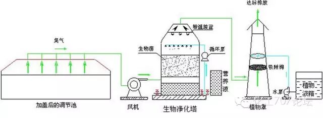臭气处理方式大全恶臭物质种类繁多,来源广泛,对人体呼吸、消化、心血管、内分泌及神经系统都会造成不同程度的毒害,其中芳香族化合物如苯、甲苯、苯乙烯等还能使人体产生畸变、癌变。所以,清除恶臭气体是一项非常重要的技术。今天小七罗列了各种除臭方法,大家看看哪种除臭技术是除臭NO.1。 一、脱臭方法:掩蔽法 脱臭原理:采用更强烈的芳香气味与臭气掺和,以掩蔽臭气,使之能被人接收 适用范围:适用于需立即地、暂时地消除低浓度恶臭气体影响的场合,恶臭强度2.5左右,无组织排放源 优点:可尽快消除恶臭影响,灵活性大,费用低 缺点:恶臭成分并没有被去除 二、脱臭方法:稀释扩散法 脱臭原理:将有臭味地气体通过烟囱排至大气,或用无臭空气稀释,降低恶臭物质浓度以减少臭味 适用范围:适用于处理中、低浓度的有组织排放的恶臭气体 优点:费用低设备简单 缺点:易受气象条件限制,恶臭物质依然存在 三、脱臭方法:热力燃烧法、催化燃烧法 脱臭原理:在高温下恶臭物质与燃料气充分混和,实现完全燃烧 适用范围:适用于处理高浓度、小气量的可燃性气体 优点:净化效率高,恶臭物质被彻底氧化分解 缺点:设备易腐蚀,消耗燃料,处理成本高,易形成二次污染 四、脱臭方法:水吸收法 脱臭原理:利用臭气中某些物质易溶于水的特性,使臭气成分直接与水接触,从而溶解于水达到脱臭目的 适用范围:水溶性、有组织排放源的恶臭气体 优点:工艺简单,管理方便,设备运转费用低 缺点:产生二次污染,需对洗涤液进行处理;净化效率低,应与其他技术联合使用,对硫醇,脂肪酸等处理效果差 五、脱臭方法:药液吸收法 脱臭原理:利用臭气中某些物质和药液产生化学反应的特性,去除某些臭气成分 适用范围:适用于处理大气量、高中浓度的臭气 优点:能够有针对性处理某些臭气成分,工艺较成熟 缺点:净化效率不高,消耗吸收剂,易形成而二次污染 六、脱臭方法:吸附法 脱臭原理:利用吸附剂的吸附功能使恶臭物质由气相转移至固相 适用范围:适用于处理低浓度,高净化要求的恶臭气体 优点:净化效率很高,可以处理多组分恶臭气体 缺点:吸附剂费用昂贵,再生较困难,要求待处理的恶臭气体有较低的温度和含尘量 七、脱臭方法:生物滤池式脱臭法 脱臭原理:恶臭气体经过去尘增湿或降温等预处理工艺后,从滤床底部由下向上穿过由滤料组成的滤床,恶臭气体由气相转移至水—微生物混和相,通过固着于滤料上的微生物代谢作用而被分解掉 适用范围:目前研究最多,工艺最成熟,在实际中也最常用的生物脱臭方法。又可细分为土壤脱臭法、堆肥脱臭法、泥炭脱臭法等。 优点:处理费用低 缺点:占地面积大,填料需定期更换,脱臭过程不易控制,运行一段时间后容易出现问题,对疏水性和难生物降解物质的处理还存在较大难度。 八、脱臭方法:生物滴滤池式 脱臭原理:原理同生物滤池式类似,不过使用的滤料是诸如聚丙烯小球、陶瓷、木炭、塑料等不能提供营养物的惰性材料。 适用范围:只有针对某些恶臭物质而降解的微生物附着在填料上,而不会出现生物滤池中混和微生物群同时消耗滤料有机质的情况 优点:池内微生物数量大,能承受比生物滤池大的污染负荷,惰性滤料可以不用更换,造成压力损失小,而且操作条件极易控制 缺点:需不断投加营养物质,而且操作复杂,使得其应用受到限制 九、脱臭方法:洗涤式活性污泥脱 脱臭原理:将恶臭物质和含悬浮物泥浆的混和液充分接触,使之在吸收器中从臭气中去除掉,洗涤液再送到反应器中,通过悬浮生长的微生物代谢活动降解溶解的恶臭物质 适用范围:有较大的适用范围 优点:可以处理大气量的臭气,同时操作条件易于控制,占地面积小 缺点:设备费用大,操作复杂而且需要投加营养物质 十、脱臭方法:曝气式活性污泥脱臭法 脱臭原理:将恶臭物质以曝气形式分散到含活性污泥的混和液中,通过悬浮生长的微生物降解恶臭物质 适用范围:适用范围广,目前日本已用于粪便处理场、污水处理厂的臭气处理 优点:活性污泥经过驯化后,对不超过极限负荷量的恶臭成分,去除率可达99.5%以上 缺点:受到曝气强度的限制,该法的应用还有一定局限 十一、脱臭方法:三相多介质催化氧化工艺 脱臭原理:反应塔内装填特制的固态复合填料,填料内部复配多介质催化剂。当恶臭气体在引风机的作用下穿过填料层,与通过特制喷嘴呈发散雾状喷出的液相复配氧化剂在固相填料表面充分接触,并在多介质催化剂的催化作用下,恶臭气体中的污染因子被充分分解。 适用范围:适用范围广,尤其适用于处理大气量、中高浓度的废气,对疏水性污染物质有很好的去除率。 优点:占地小,投资低,运行成本低;管理方便,即开即用;耐冲击负荷,不易污染物浓度及温度变化影响。 缺点:需消耗一定量的药剂 十二、脱臭方法:低温等离子体技术 脱臭原理:介质阻挡放电过程中,等离子体内部产生富含极高化学活性的粒子,如电子、离子、自由基和激发态分子等。废气中的污染物质与这些具有较高能量的活性基团发生反应,最终转化为CO2和H2O等物质,从而达到净化废气的目的。 适用范围:适用范围广,净化效率高,尤其适用于其它方法难以处理的多组分恶臭气体,如化工、医药等行业。 优点:电子能量高,几乎可以和所有的恶臭气体分子作用;运行费用低;反应快,设备启动、停止十分迅